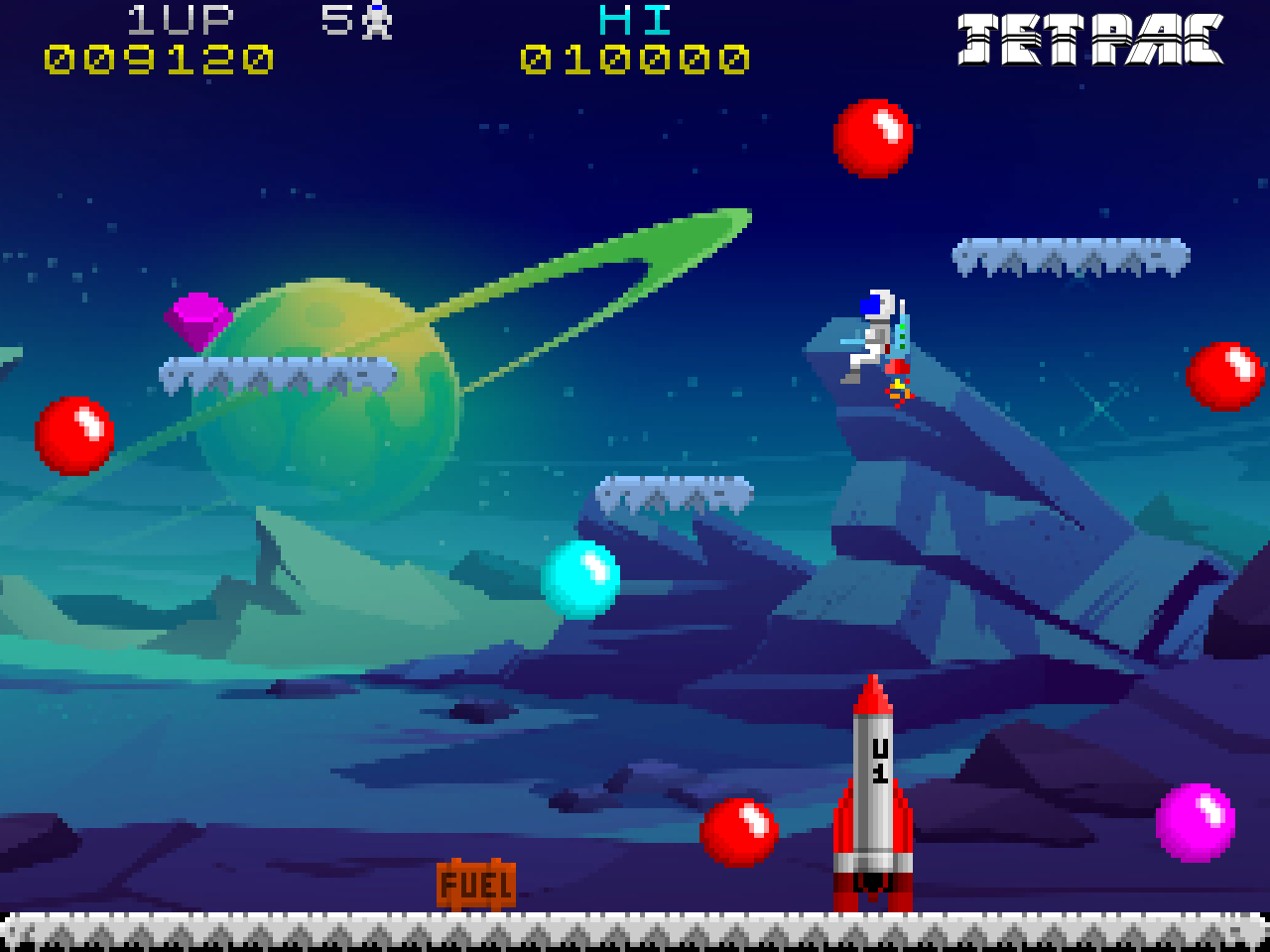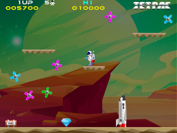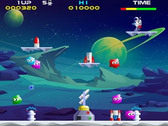 - Lunar Jetman missile launcher. Straight from the sequel - complete the level before time runs out and the homing missile is launched. Watch out for those nasty little shooty things too!